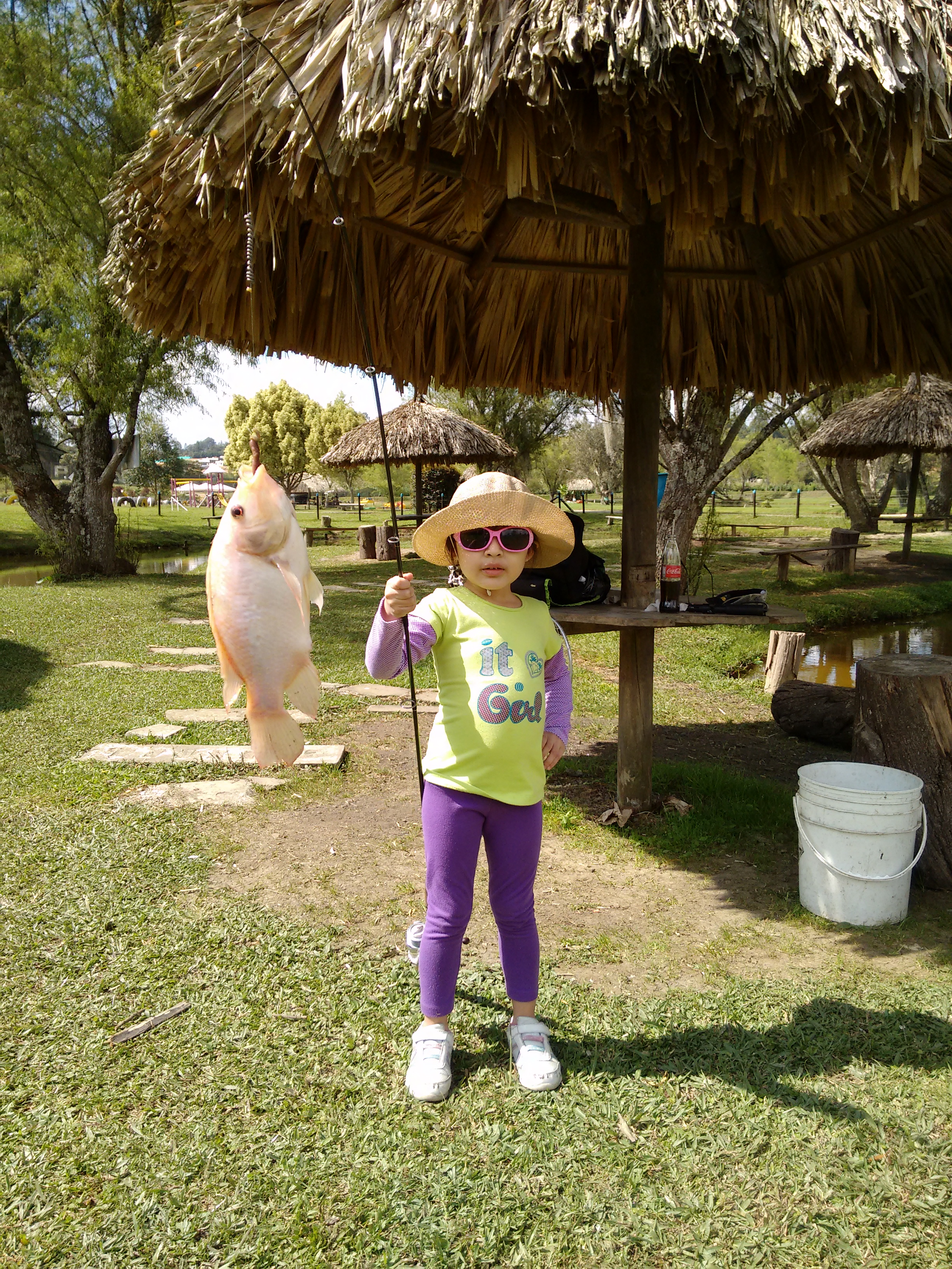 Pasados unos minutos 2 tilapias mas cayeron en la carnada de Valeria quien esta vez los sacó con muchas mas facilidad.