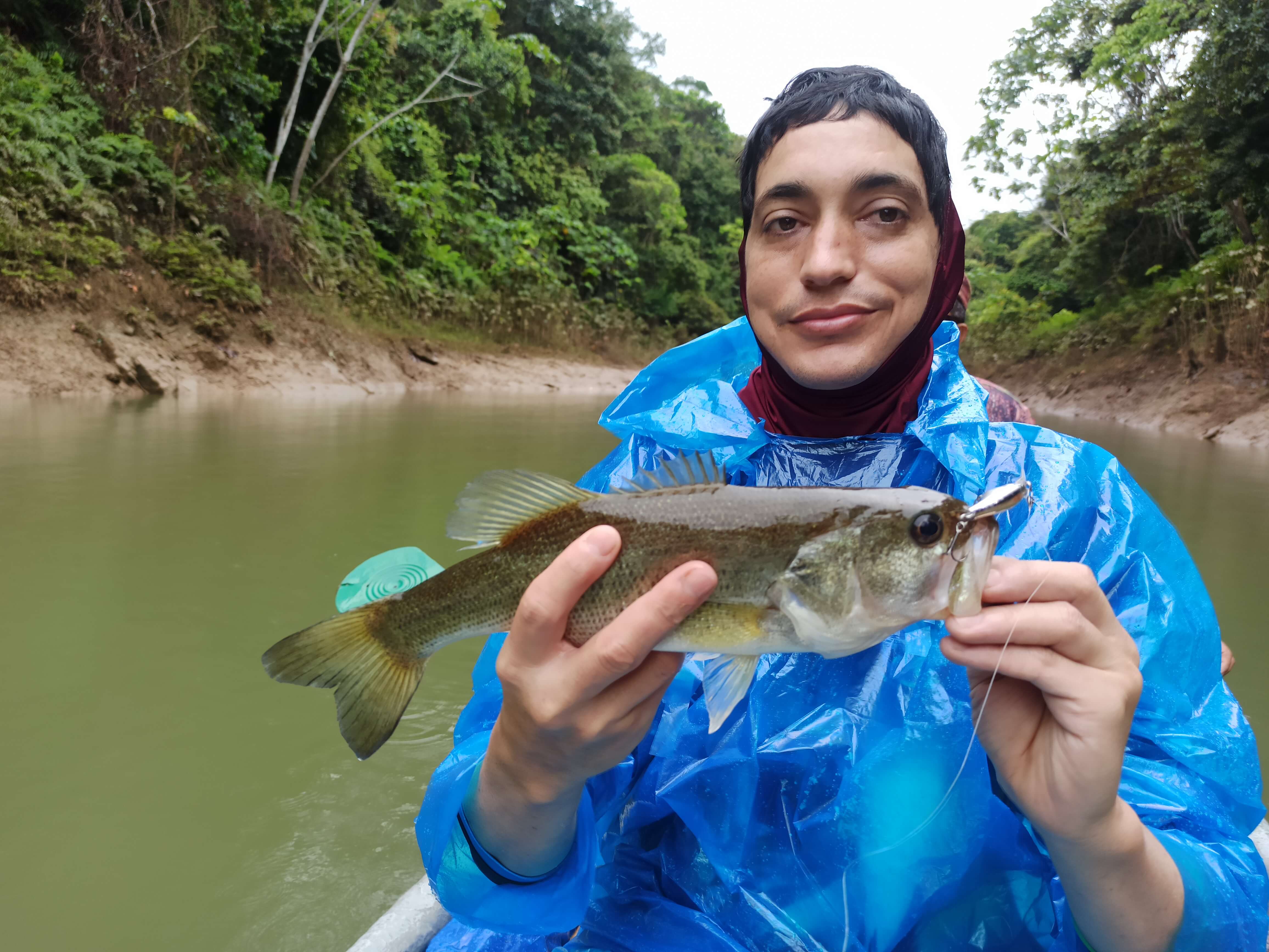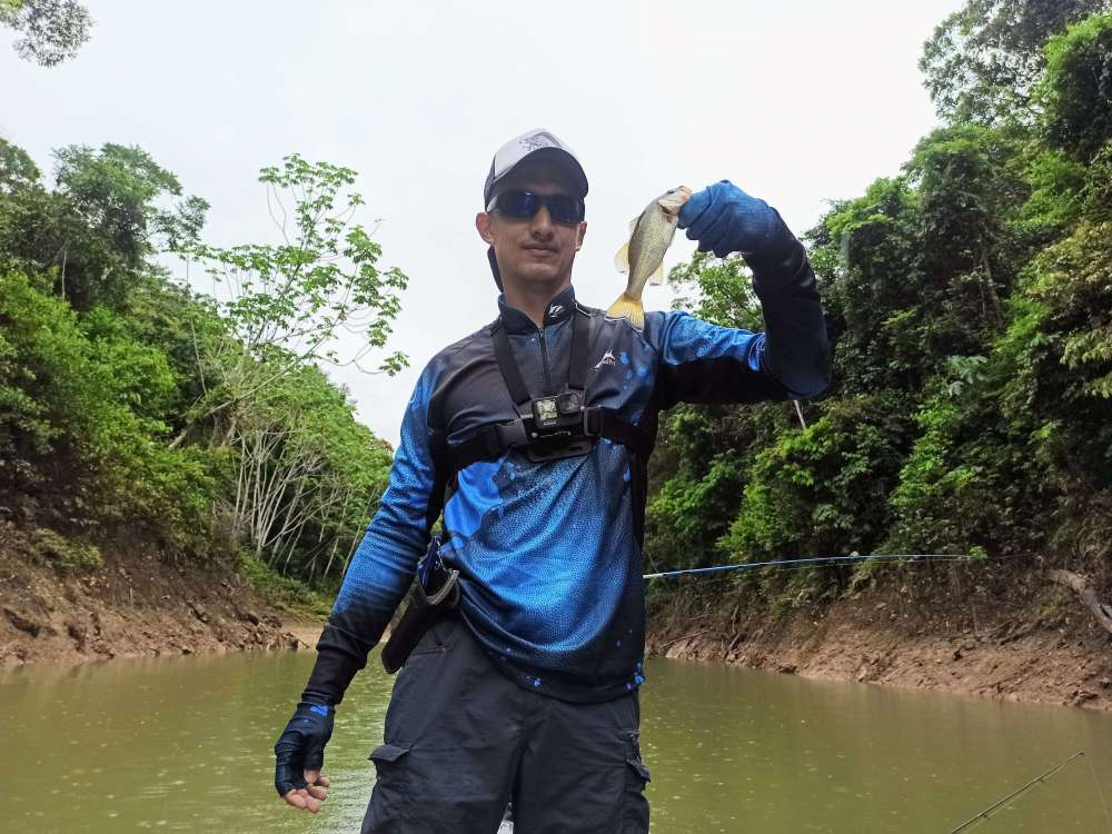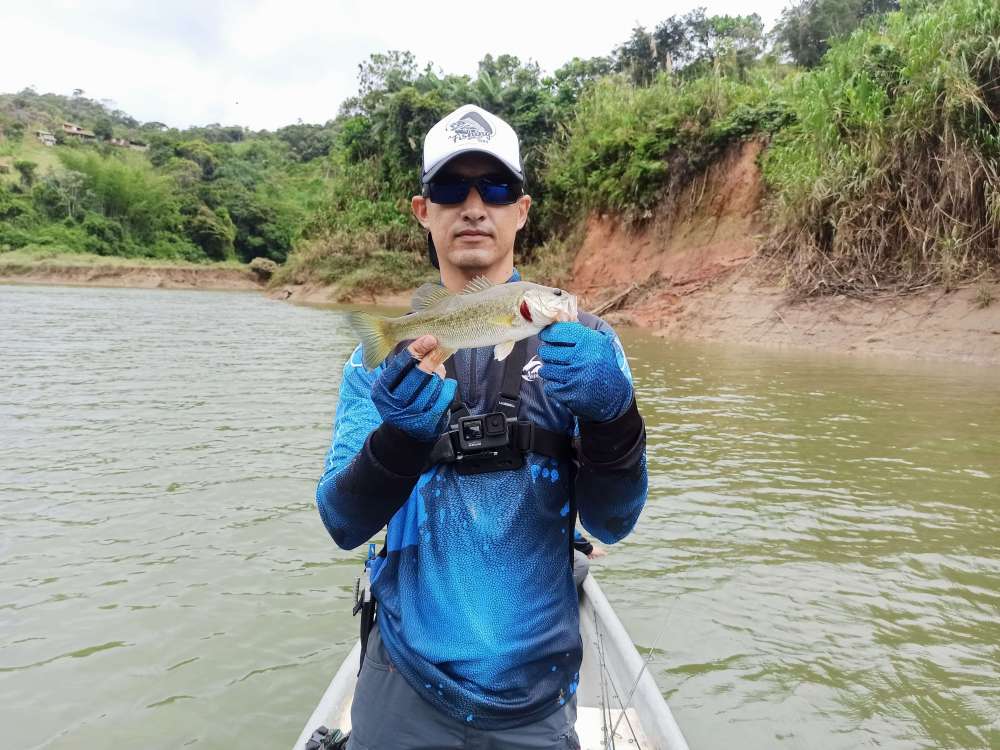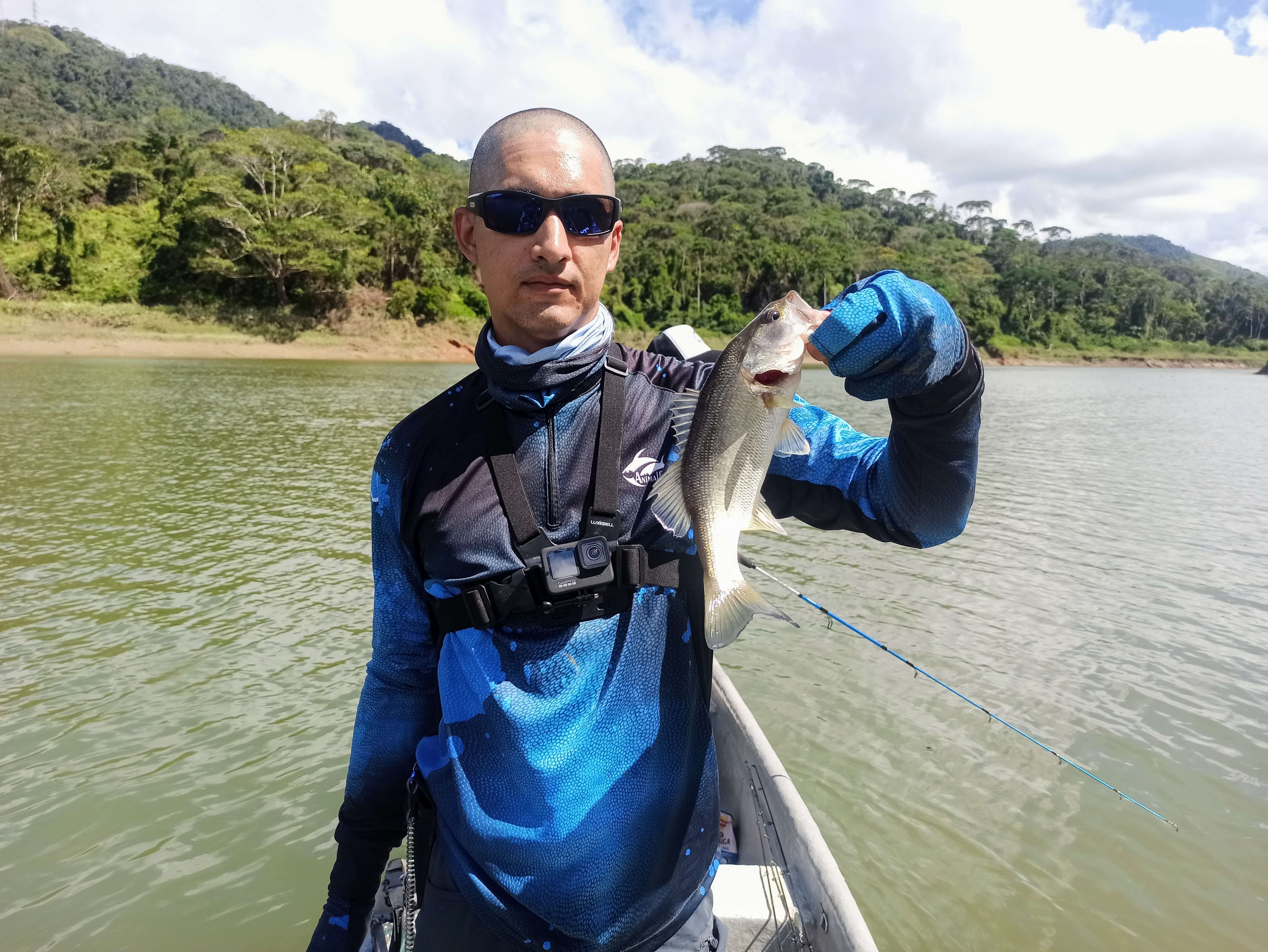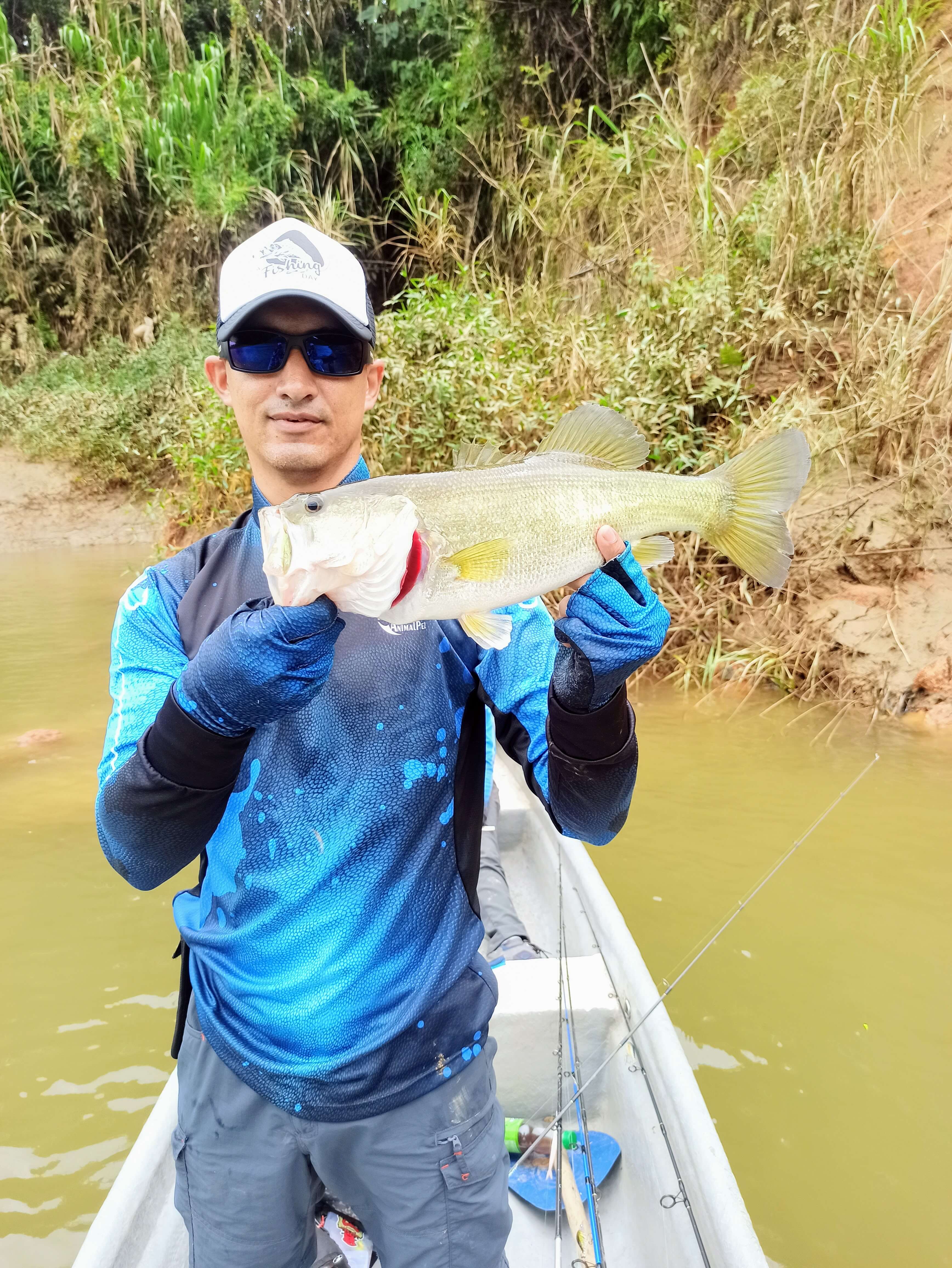 Luego de varios bass capturados, no ver una sola Mojarra, Yamu o Morrudo y ubicar en el lugar y momento adecuados un gusano plástico montado en un jig de 1/8 de onzas, el espíritu de las aguas me premió con una hermosa captura de un bass de 45cm que dio una pelea espectacular a mi carrete Daiwa QR 750 montado en una vara light y línea de 6lb.