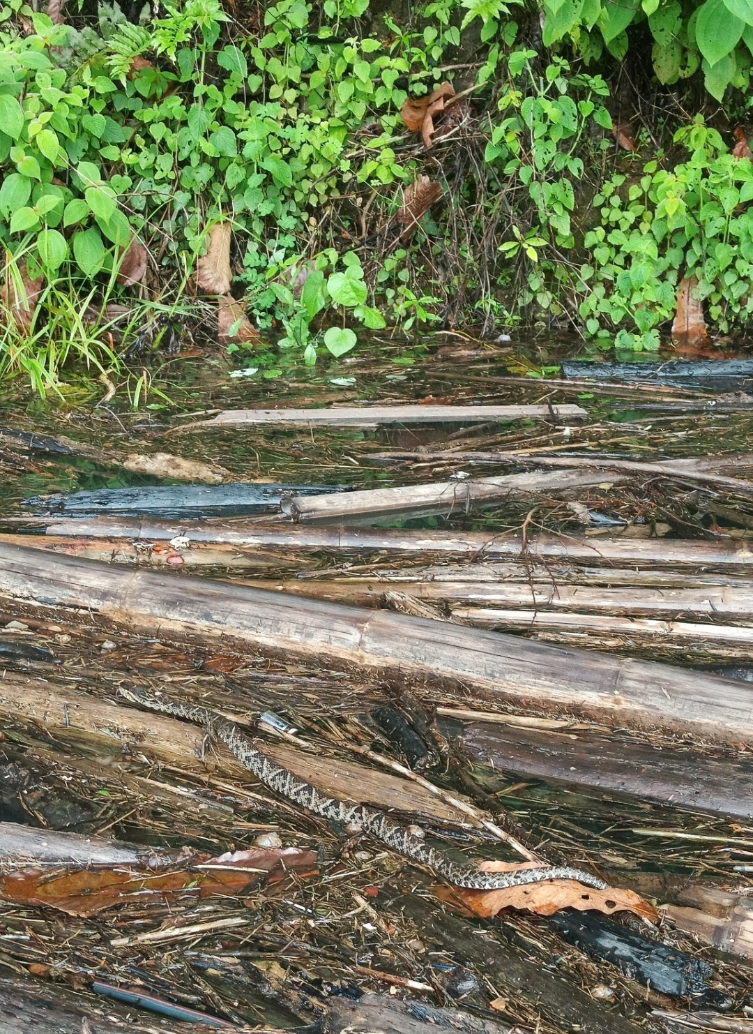Unos minutos antes de comenzar a lanzar me encontré con una Mapana (Bothrops asper) que aunque siempre le daré su distancia, siempre había esperado encontrarla y admirarla