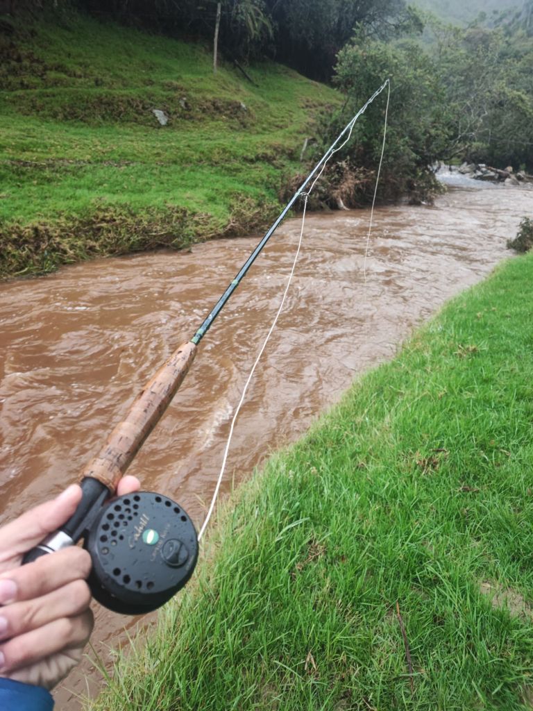 En abril, decidí darme la oportunidad de aprender algo nuevo y me dirigí con mi amigo José Osorio de Cormoran a un pequeño río en Belmira, Antioquia. Estaba ansioso por probar la pesca con mosca, una técnica que había admirado durante años pero en la que nunca había profundizado. El clima lluvioso de esos días no nos dio tregua, y adaptar mi estilo de spinning al fly fue más complicado de lo que imaginaba. Mientras José capturaba un par de truchas arcoíris con destreza, yo apenas alcancé a sentir un solo ataque antes de que la pequeña trucha se escapara de mi línea. Entre la lluvia, los nervios de dominar la nueva técnica y mi inexperiencia, no conseguí llevar a la orilla ninguna captura. Sin embargo, la experiencia me sirvió de motivación para adquirir mi primer equipo de pesca con mosca y prometí practicar hasta sentirme más seguro en esta modalidad tan elegante como desafiante.
