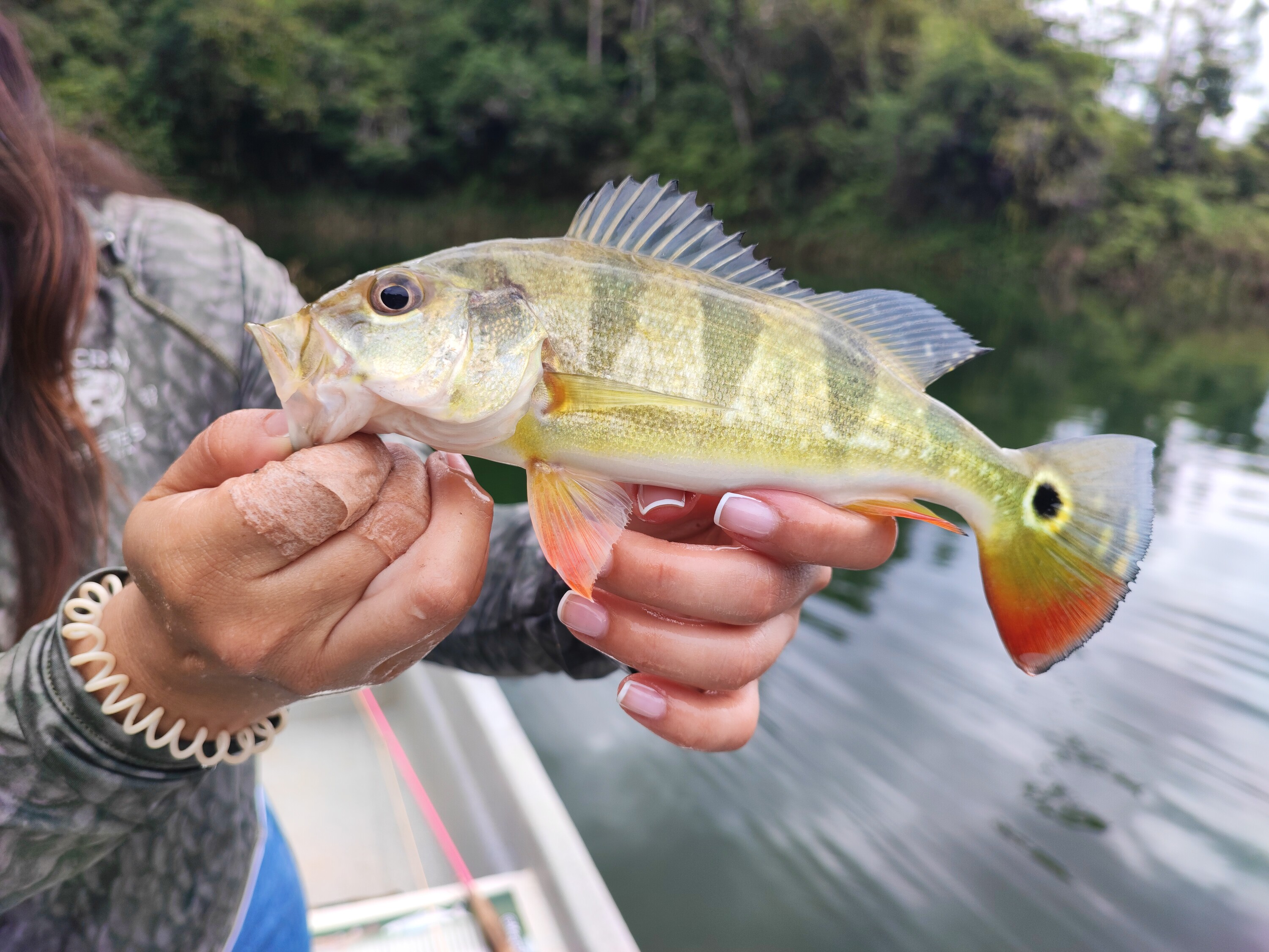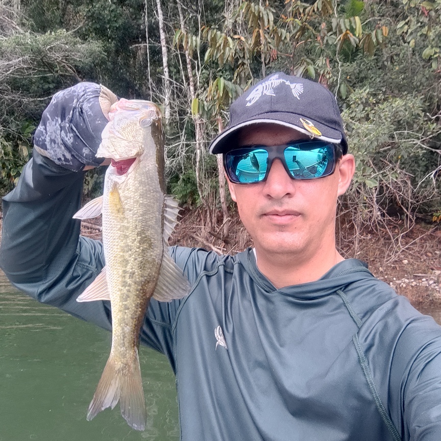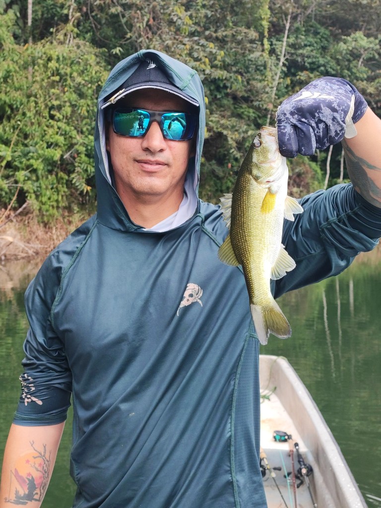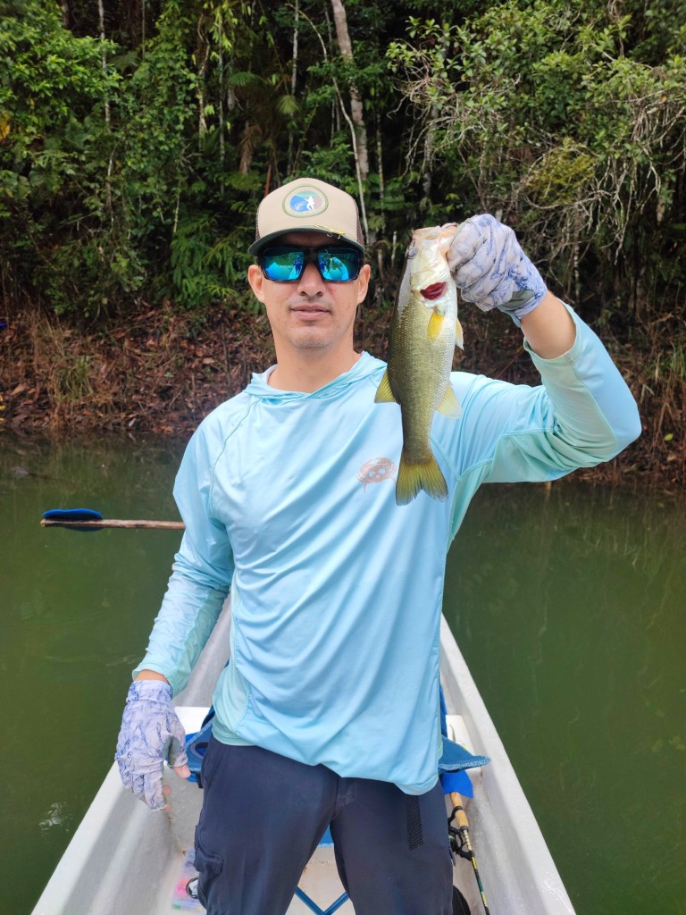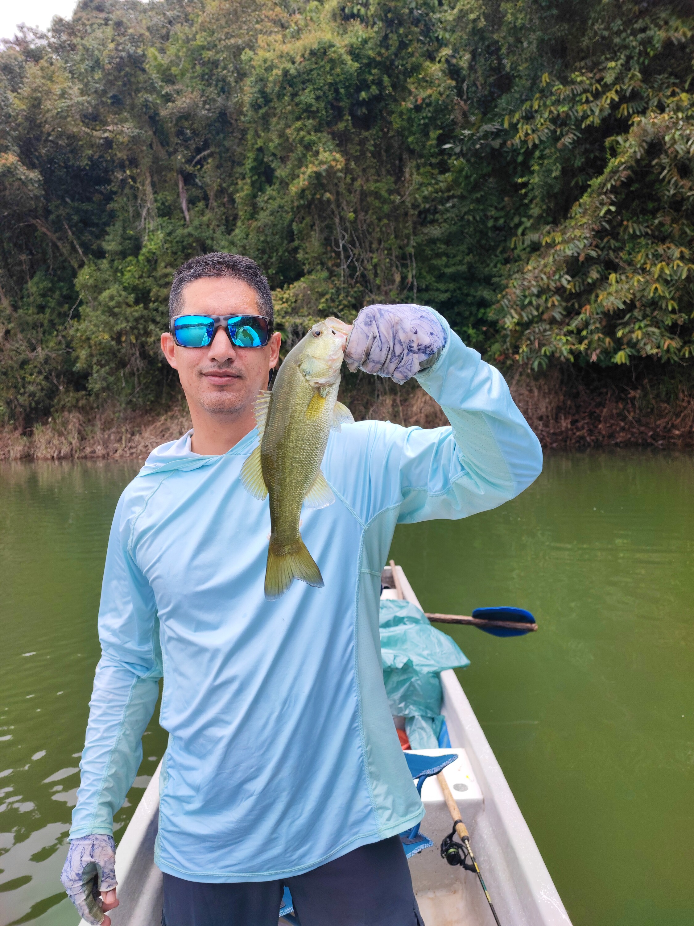 Mi primera gran salida tuvo lugar en marzo, cuando por fin pude dedicar un par de días al Embalse Topocoro, situado a aproximadamente hora y media de Bucaramanga. Este imponente cuerpo de agua, con cerca de 7.000 hectáreas, está rodeado por la Serranía de los Yariguíes, que alberga especies tan magníficas como jaguares, pumas y tigrillos. El calor de esa temporada seca en Colombia había disminuido drásticamente el nivel del embalse, lo que complicó bastante la pesca. Aun así, esos días no perdieron su encanto: recorrí en bote varias orillas y puntos de profundidad media en busca de tucunarés. Recuerdo la emoción de ver el sol reflejándose en la superficie mientras lanzaba mis señuelos, esperando ese tirón inconfundible. Tras varios ataques y suertes fallidas, logré la captura de un tucunaré en el segundo día; fue un momento breve pero intenso, justo lo necesario para hacer que toda la espera valiera la pena. El Topocoro, con sus paisajes y desafíos, se convirtió en un inicio de temporada inolvidable.