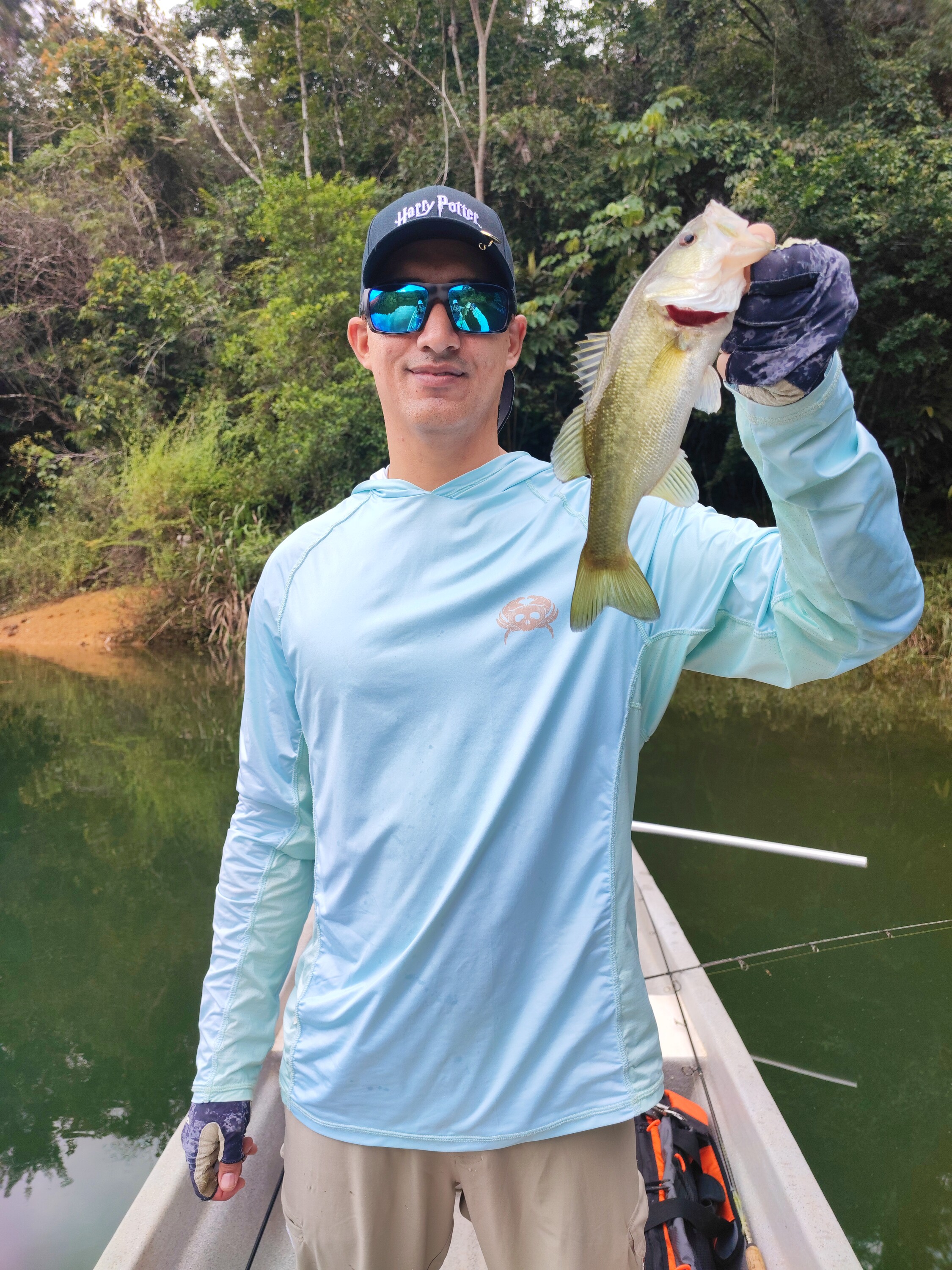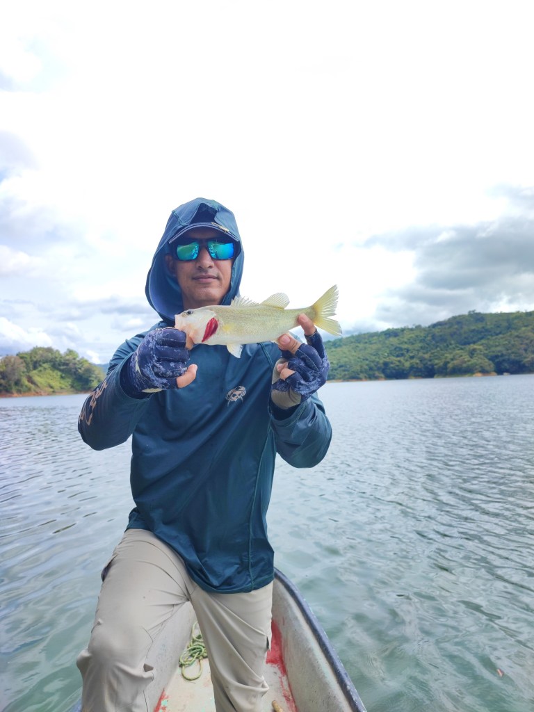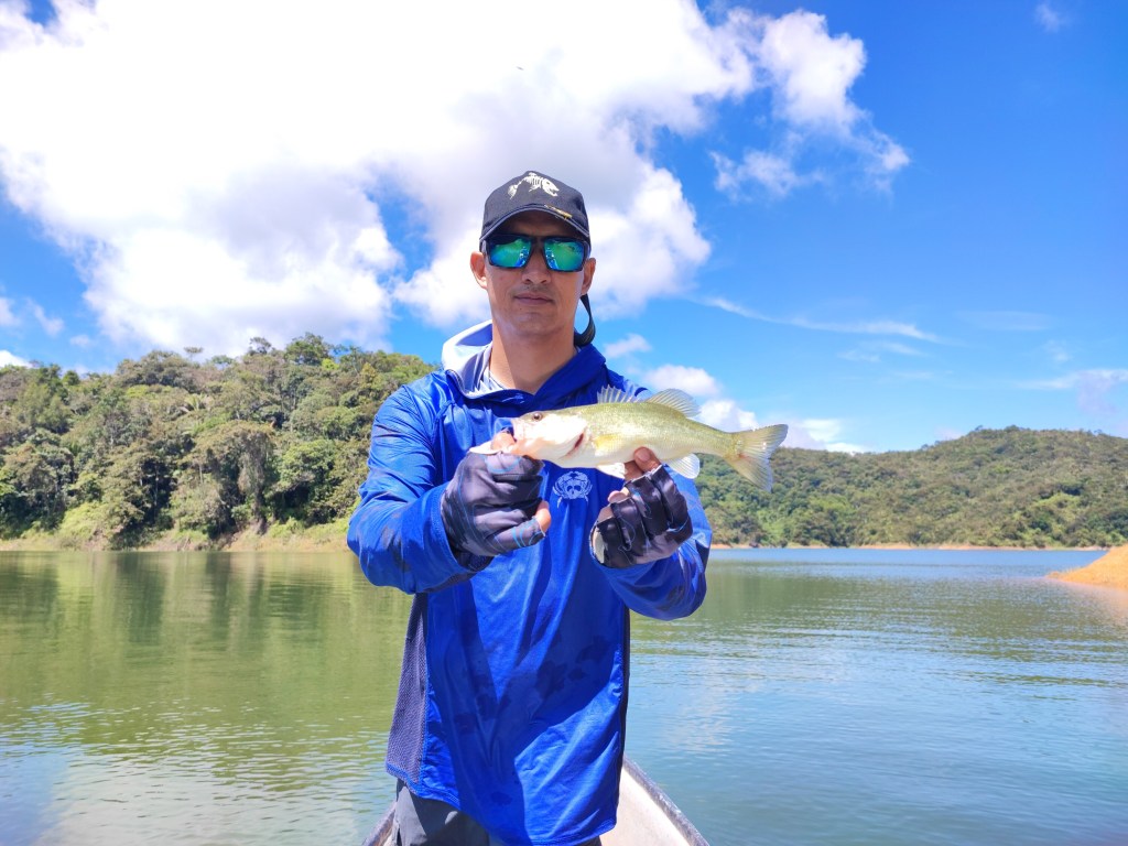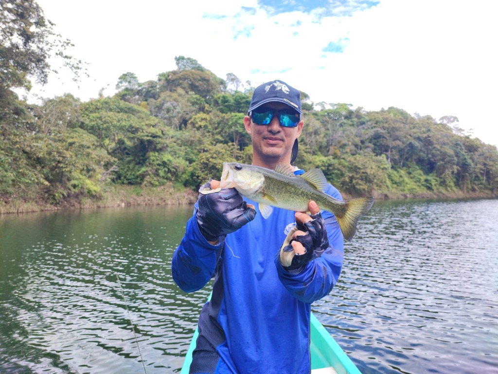 Pasaron algunas semanas hasta que en junio volví a sentir el cosquilleo de planear una nueva salida. Junto a mis compañeros del Club Espacio de Pesca, organicé un viaje al Embalse de Jaguas, un lugar que siempre me ha sorprendido por sus paisajes y su abundancia de black bass. Esta vez, el cielo nos regaló un día soleado e inspirador. Navegamos varias horas, probamos diferentes señuelos y profundidades, logrando al final del día capturas interesantes de bass, aunque no nos cruzamos con la ansiada mojarra ni con el morrudo, dos especies que se han vuelto casi legendarias en ciertos embalses del país. Pese a todo, disfrutamos cada momento y celebramos un día de camaradería, grandes sonrisas y nuevos recuerdos junto al agua.