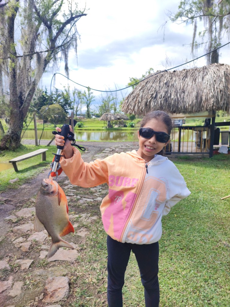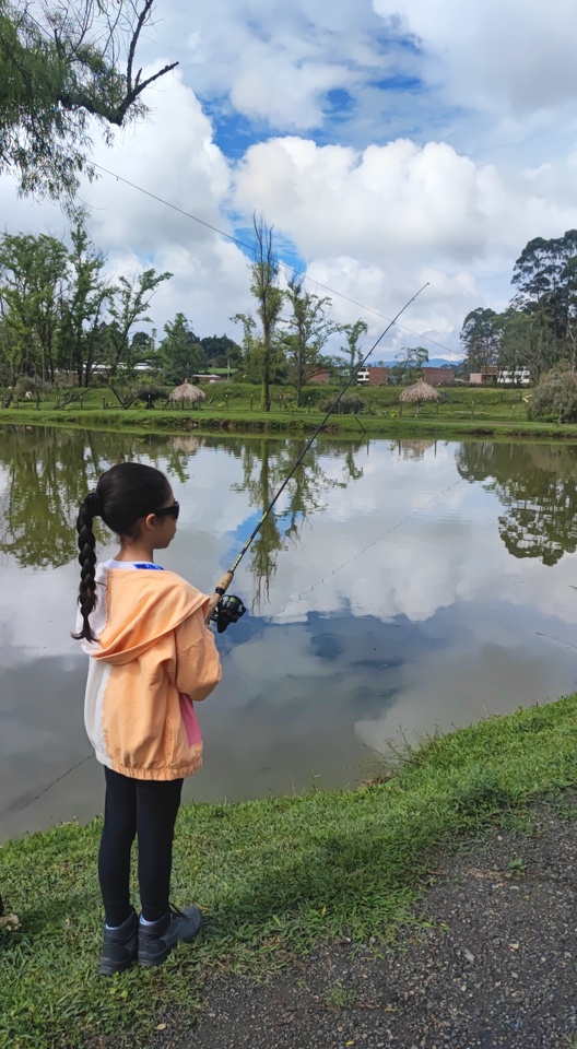 Finalmente, llegamos a los días de diciembre. El 27 decidí compartir mi pasión con mi hija menor en el Parque Ecológico Alcaravanes, en Marinilla. Empezamos temprano para que ella practicara lanzamientos con señuelos artificiales, aunque no logró capturas con esa técnica; sin embargo, el ánimo se mantuvo en alto y, al cambiar a carnada, pudo atrapar tilapia y cachama, sonriendo como nunca mientras devolvíamos al agua a sus pescados. Por mi parte, tuve dos piques efectivos de black bass, experiencia suficiente para sentir que ese vínculo familiar y pesquero creció un poco más aquel día.