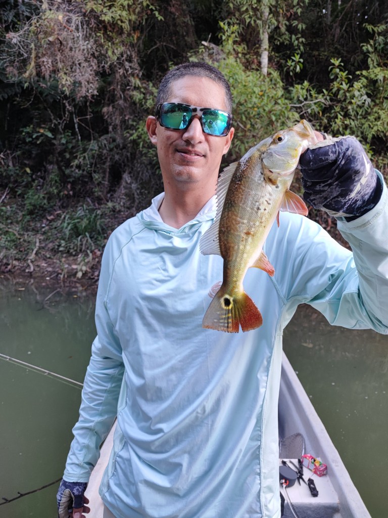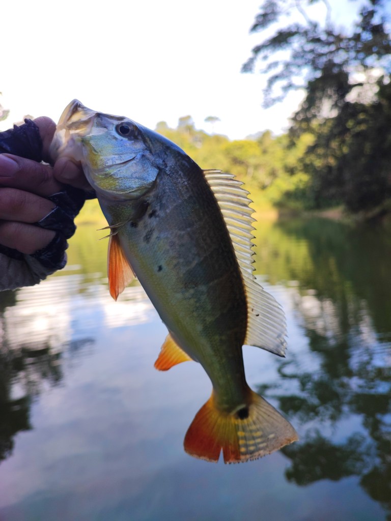 Ya en noviembre, y con la memoria llena de experiencias, me encontré cerca de los Lagos de Porce, así que aproveché un día soleado para entrenar de nuevo la pesca con mosca. Aún me costaba bastante dominar el lance y lograr que la mosca cayera sutilmente sobre la superficie, así que, después de varios intentos frustrados, desempolvé mi equipo de spinning y lancé mi señuelo favorito. Bastó un rato para recibir la gran alegría de la tarde: un tucunaré de un par de libras de peso que me arrancó una sonrisa tras sentir su brío al otro lado de la línea. Con esa única captura, me di por satisfecho y concluí la jornada pensando en seguir puliendo mi técnica de fly en los meses siguientes.